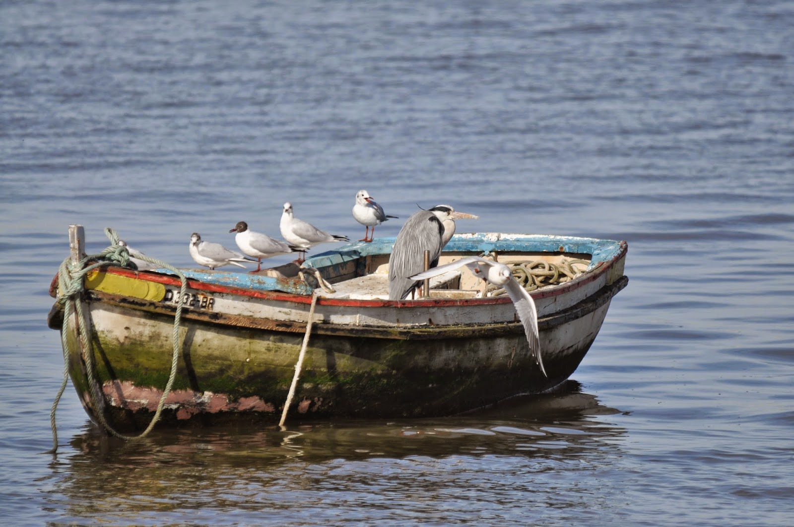 Finalmente, demorou muito tempo, mas a gaivota voou. Não se vê na fotografia, mas poisou noutro barco logo ao lado!!!!!!!